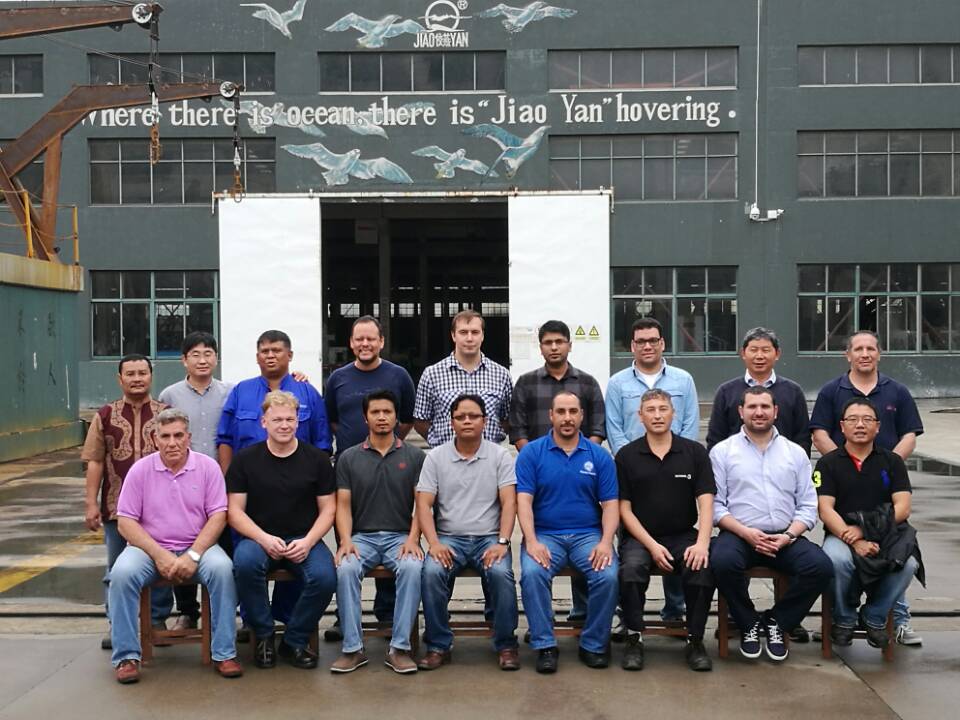 17名船舶服务精英人员来到乐动手机登录入口,对厂家设备的新设计,新产品进行深层次的学习和服务训练,成为佼燕救生设备的优秀服务商,为佼燕的客户提供更优质,更专业,更及时的服务.